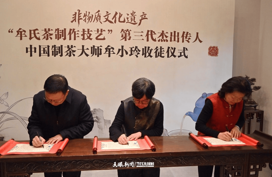 “卓绝古代文明是文明相信的源泉,师带徒是中邦千百年来非物质文明遗产传承的合键方法。”贵州省茶文明探索会、贵州省绿茶品牌进展推进会副会长兼秘书长徐嘉民行为睹证人之一,正在谈话中说,黔茶工业进展须要一代又一代的贵州茶人薪火相传,合伙担起黔茶兴盛负担,“牟应书老先生为贵州茶工业进展作出过杰出功劳,牟小玲教授收徒传道,即是正在文明和武艺传承中的负担和职责的代系转达。”